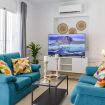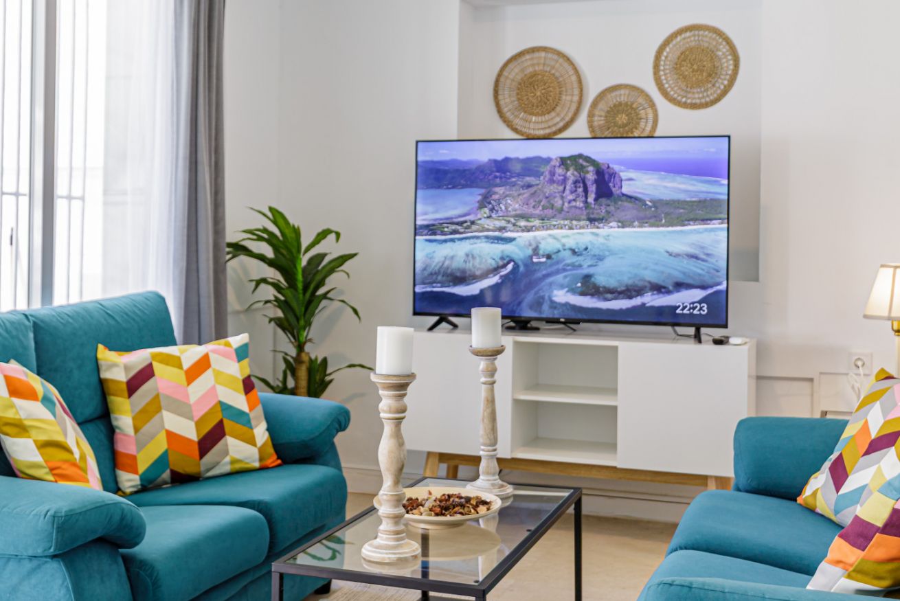 Este apartamento con aire acondicionado consta de 3 dormitorios, sala de estar, una cocina totalmente equipada con nevera y cafetera, y 2 baños con ducha y artículos de aseo gratuitos. Hay toallas y ropa de cama en el apartamento.